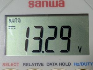 帰宅してから測定したバッテリ電圧は13.27Vでした。チャートによれば残容量は70%〜90%ということになります。エレキのみでの使用です。